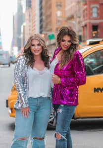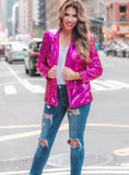 Look like a movie star in this stunning sequin blazer! This sequin blazer features all over sequins, collar, and an interior lining. Throw this on and the paparazzi will have you set in their sights.