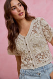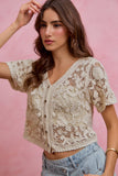 Add a touch of elegance to your wardrobe with this floral crochet lace button-down cardigan-style top. The intricate crochet lace detailing gives a delicate and feminine look. The button-down style adds versatility for different styling options. Perfect for layering over a camisole or pairing with high-waisted bottoms. Elevate your outfit with this sophisticated and stylish top.