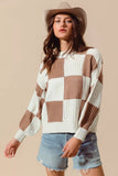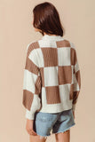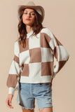 SO ME Ribbed Color Block Checkered Plaid Sweater