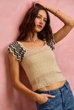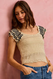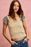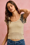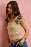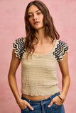 SO ME Wavy Textured Knit Top With Fluttered Sleeves
