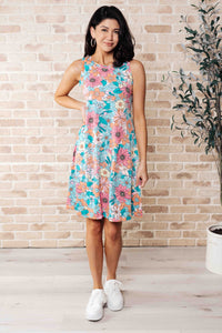 Stay comfortable and stylish with our Summer Garden Sleeveless Swing Dress. Made with soft, sweater knit fabric, this dress features a banded round neckline and sleeve cuffs for a flattering look. Perfect for any summer occasion.