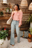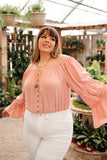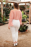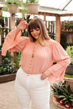 The Sunset Sailing Bodysuit has a dreaming of summer nights spent on a yacht! This stunning top is composed of an off shoulder silhouette, a button placket down center front, and bell sleeves with a dainty ruffle detail, all shaped from a lightweight gauzy fabric.