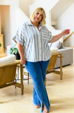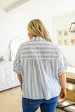 Uniquely tailored and designed to inspire relaxation, the Tailored to Relax Striped Button down has an oversized silhouette. Featuring dolman sleeves, perpendicular striped details, and a gathered back panel, making it an ideal choice for your next staycation. Dare to look fashionably comfortable and relax in style.