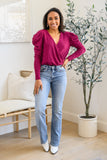 Your shine can never be dulled in the Take Me Out Faux Wrap Bodysuit In Magenta! An array of glitter spreads across a lightweight knit that shapes a surplice neckline and long puff sleeves. The flirty bodice continues down to attached knit full coverage bottoms that secure with a snap closures.