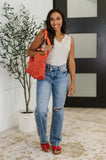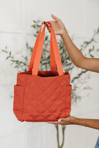 The There She Goes Bag in Tomato is a tote designed for the modern woman. The quilted fabric gives it a luxurious look and feel, while the shoulder and arm straps make it comfortable to carry. The zipper closure keeps your belongings safe, and the side pockets provide extra storage space!