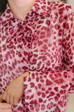 The Totally Not Dramatic Leopard Print Button Down in Hot Pink is here to turn heads and steal the spotlight. This sheer chiffon beauty features a crisp collared neck with a functional tie that lets you play with your look—cinch it tight or let it flow loose. The full front button-down design gives you total control, while the scooped hem and stepped sleeve cuffs add unexpected flair. Perfect for layering over a slip or rocking solo when you're feeling bold and ready to make a statement.