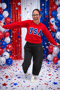 Made on gildan red sweatshirt with glitter and sequin embroidered appliqué