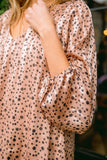 Our Vivian Satin Blouse is such a romantic and fun top consisting of a subtle vertical striped pattern highlighted with shiny tinsel and decorated beautifully in a black dotted print. In a sweet rose gold color, this top is perfect for date night. Dress it up with jeans and heeled booties, or even tuck into a mini skirt. Either way, you're going to look stunning in this top!