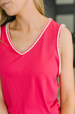 Whisper Trim Detailed V-Neck Tank in Hot Pink