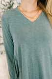 Breezy, effortless, and oh-so-wearable, the Wind off the Sea v-neck relaxed top is your new favorite layer. Spun from lightweight, stretchy jersey knit in a soft heathered finish, this long sleeve beauty drapes beautifully without clinging. The banded v-neckline flatters every frame, while an asymmetrical hem and center front seam add subtle visual interest. Perfect for those days when you want to look put-together while feeling completely at ease.