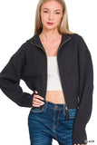 Zenana Ribbed Collared Zip Up Sweater Cardigan