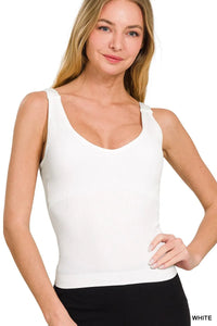 Zenana Ribbed Seamless Bra Padded V-neck Tank Top